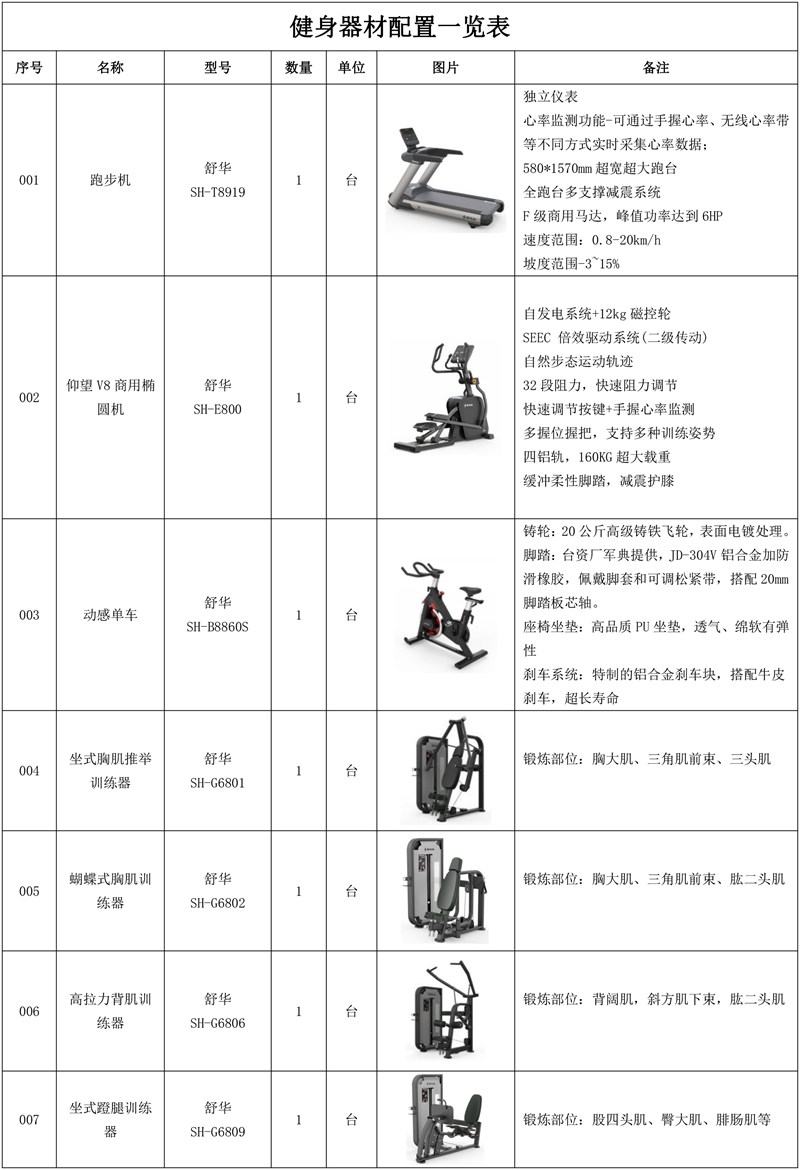 1.haobotiyu-好博V9智能跑步机SH-T8919*5台-独立仪表-简洁大气,全新外观设计,健康运动新选择;心率监测功能,可通过手握心率、无线心率带等不同方式实时采集心率数据;580*1570mm超宽超大跑台-跑感舒适,跑台整体安全稳定;全跑台多支撑减震平台,保证跑台超强支撑力,达到180kg支撑,满足专业健身房需求。F级商用马达-超强马达,AC 3.0HP 交流,峰值功率达到6HP,F级商用品质。速度范围达到0.8-20km/h;V9跑步机可实现跑台扬升功能,坡度范围-3~15%,满足客户不同的锻炼需求。
