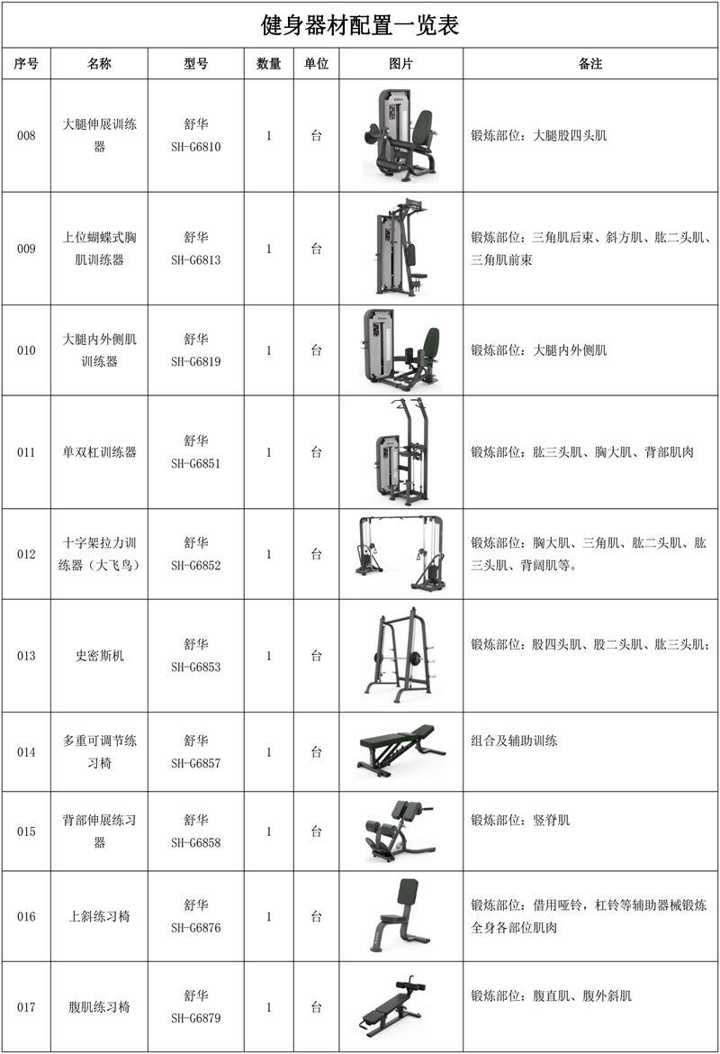 13.haobotiyu-好博史密斯机SH-G6853*1台-锻炼股四头肌、股二头肌、肱三头肌;史密斯机采用固定轨迹的杠铃设计,大大降低了训练过程中的安全风险,通过深蹲、卧推、肩推等经典动作,可以针对性地锻炼腿部力量、上肢力量、背部肌群、胸部塑形以及肩部稳定等,从而全面提升身体素质,满足不同的健身需求;