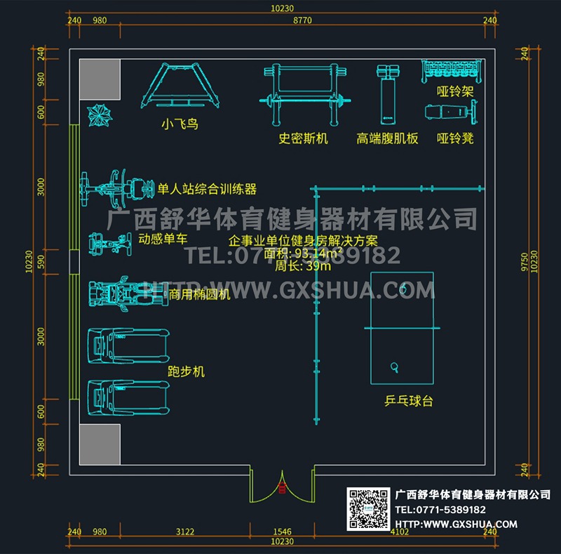此方案要求面积小于92m²,适用于企事业单位、酒店会所、楼盘社区、学校等健身场所,能满10-15人同时健身使用。(方案根据场地空间大小、预算、产品需求等进行配置仅为启发性参考)