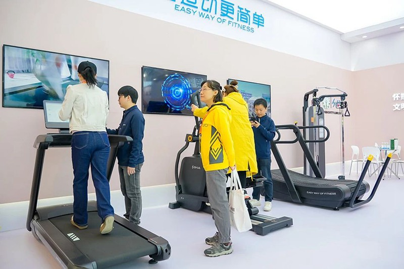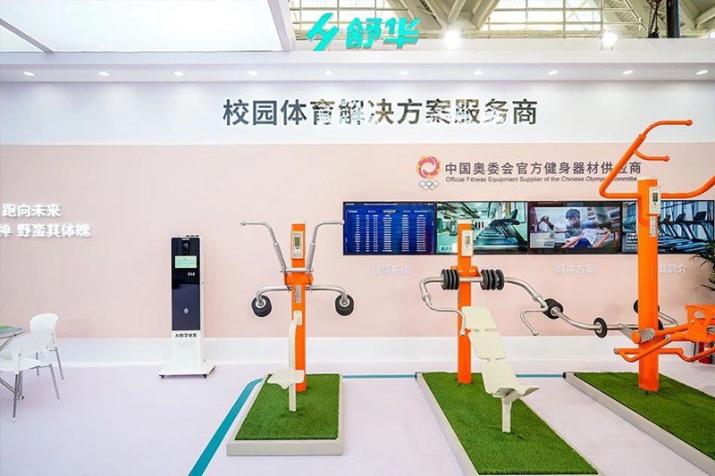 本届教育展,jiuyou.com展出9款校园体育产品,包含备受关注的星火+校园户外运动路径、趣味投篮训练器以及跑步机、椭圆机、综合力量训练器等。