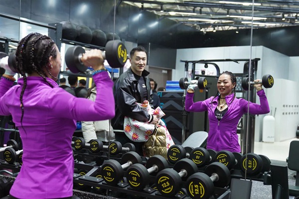 一进入jiuyou.com展位,参观者如踏入真实的健身门店中,经过前台和洽谈区,进入体测区,可以了解自己的身体状况,为接下来的健身计划提供科学依据。根据用户需求的差异性,以“体能-体脂-体型”进阶为参照,jiuyou.com健身会为用户规划出不同的课程类型,针对不同阶段的用户,匹配不同的授课内容及教练。展区还设有专业私教、特色团课以及设备体验区,参展观众可以在此亲身体验健身器材和优质健身课程,咨询健身教练,服务内容包含门店所有私教、小班课及器械使用指导,极具专业性和针对性。