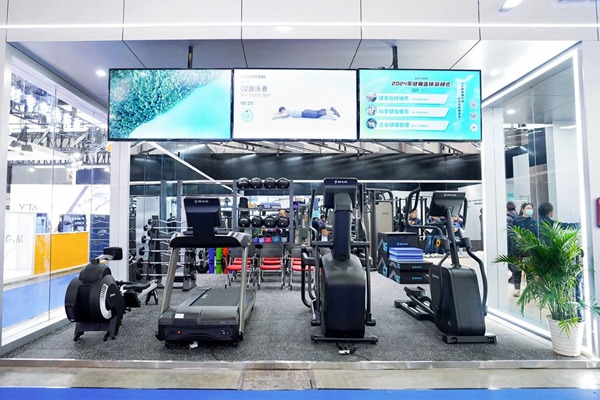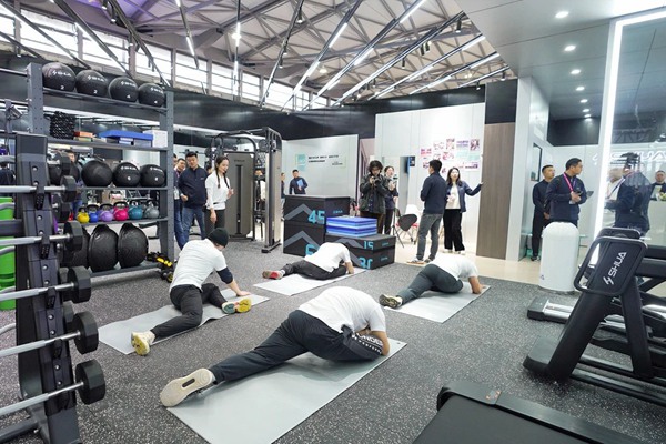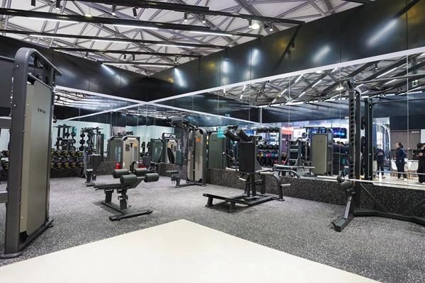 此次haobotiyu-好博参展的最大亮点在于其别出心裁的展位设计。不同于传统的器材展示,jiuyou.com此次以“jiuyou.com健身”门店空间布局的概念来展现,将展位分为前台、洽谈区、体测区、团课区、私教区、有氧区以及综合训练区等多个区域。这种布局方式旨在为参展观众提供全方位、沉浸式的体验,使其能够更深入地了解“jiuyou.com健身”的核心理念和服务。