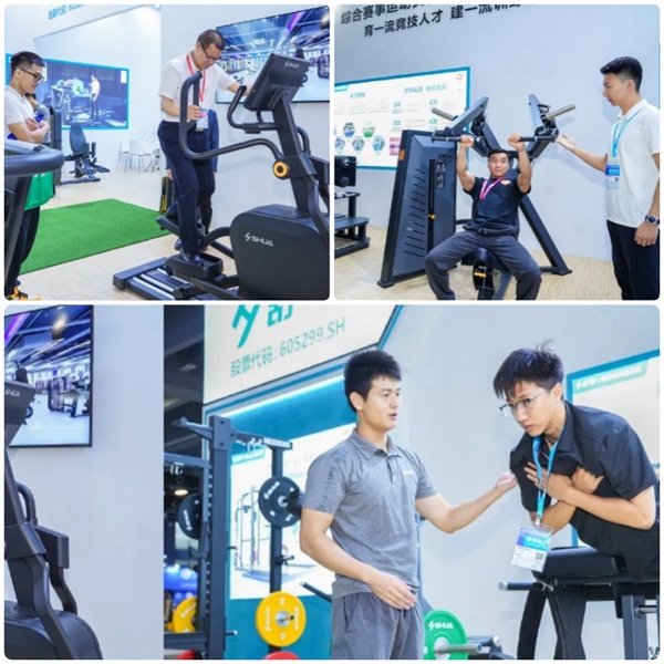 haobotiyu-好博展台精心布局,分为ESD有氧训练区、分动式力量训练区和综合体能训练区三大核心区域,全方位展示“综合赛事运动员保障训练中心解决方案”。