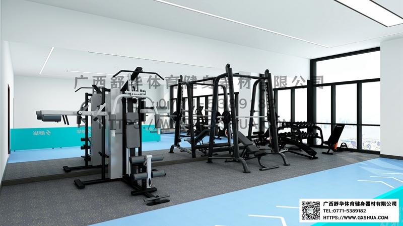 主要配重三人站综合训练器*1台;史密斯机*1台,高端腹肌板*1台,6付哑铃 套组*1套,哑铃凳*1张,满足肌肉训练需求。铺设防滑、减震的地垫,为员工提供安全舒适的运动环境,同时减少器械使用时产生的噪音。